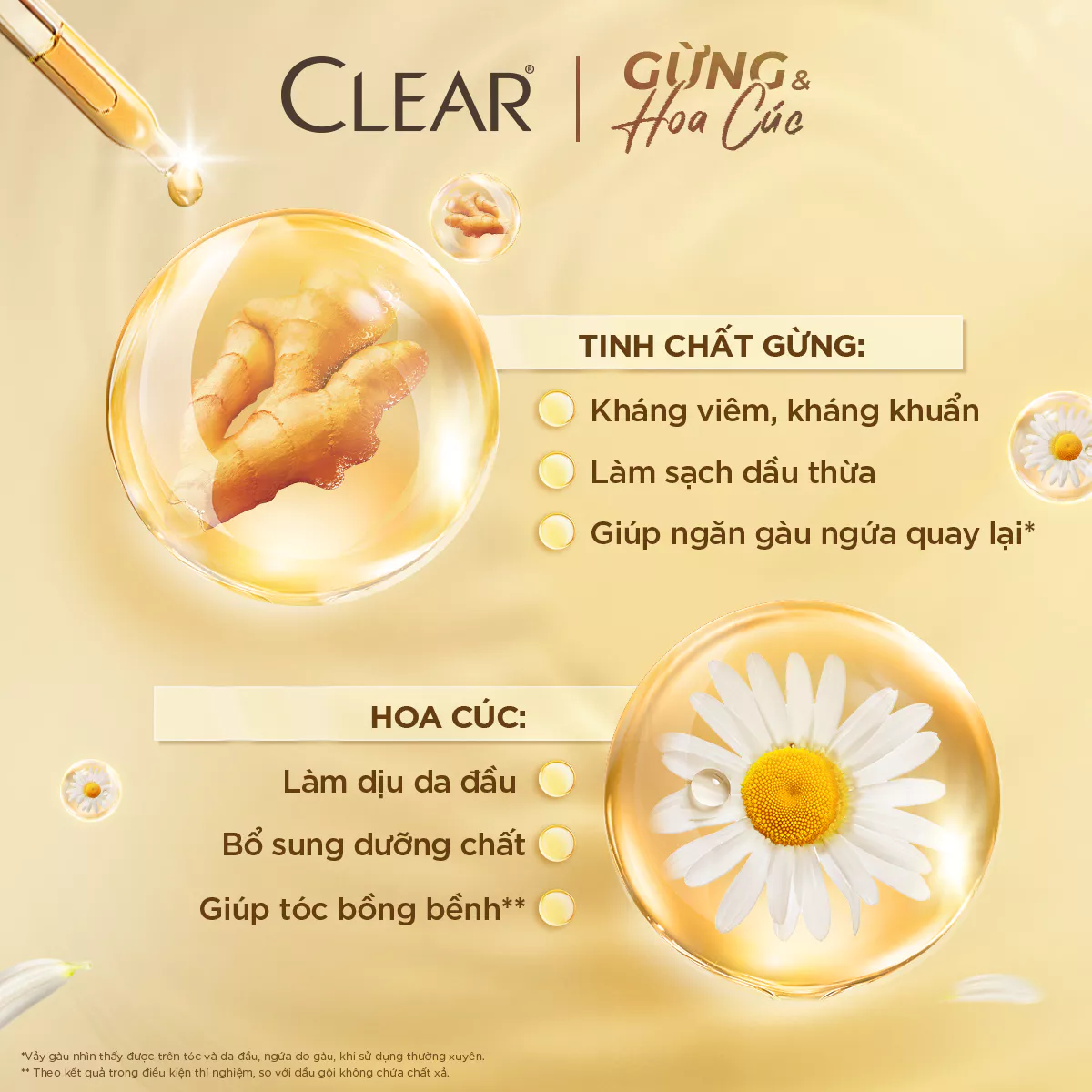 CLEAR GỪNG & HOA CÚC – Nuôi dưỡng sâu từ gốc, sạch gàu, kiểm soát dầu vượt trội