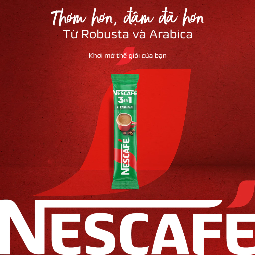 NESCAFÉ là một trong những thương hiệu cà phê hàng đầu trên toàn thế giới với lịch sử phát triên lâu đời. NESCAFÉ luôn nhận được sự tín nhiệm và tin yêu của người tiêu dùng trên toàn thế giới nhờ không ngừng sáng tạo và mang đến những ly cà phê thơm ngon đa hương vị. Các sản phẩm của NESCAFÉ được đóng hộp và đóng gói lẻ theo dây, đảm bảo cung cấp những ly cà phê chất lượng và hợp túi tiền cho mỗi gia đình người Việt.