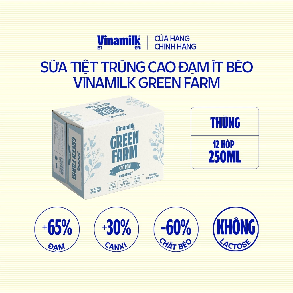 Thùng 12 hộp Sữa tươi Vinamilk Green Farm cao đạm, không lactose – hộp 250ml